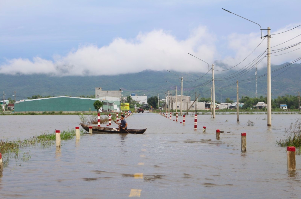 Do ảnh hưởng của mưa lũ, nhiều vùng ở xã Tuy Phước Đông (Gia Lai) đã bị ngập cục bộ. Ảnh Ngọc Minh