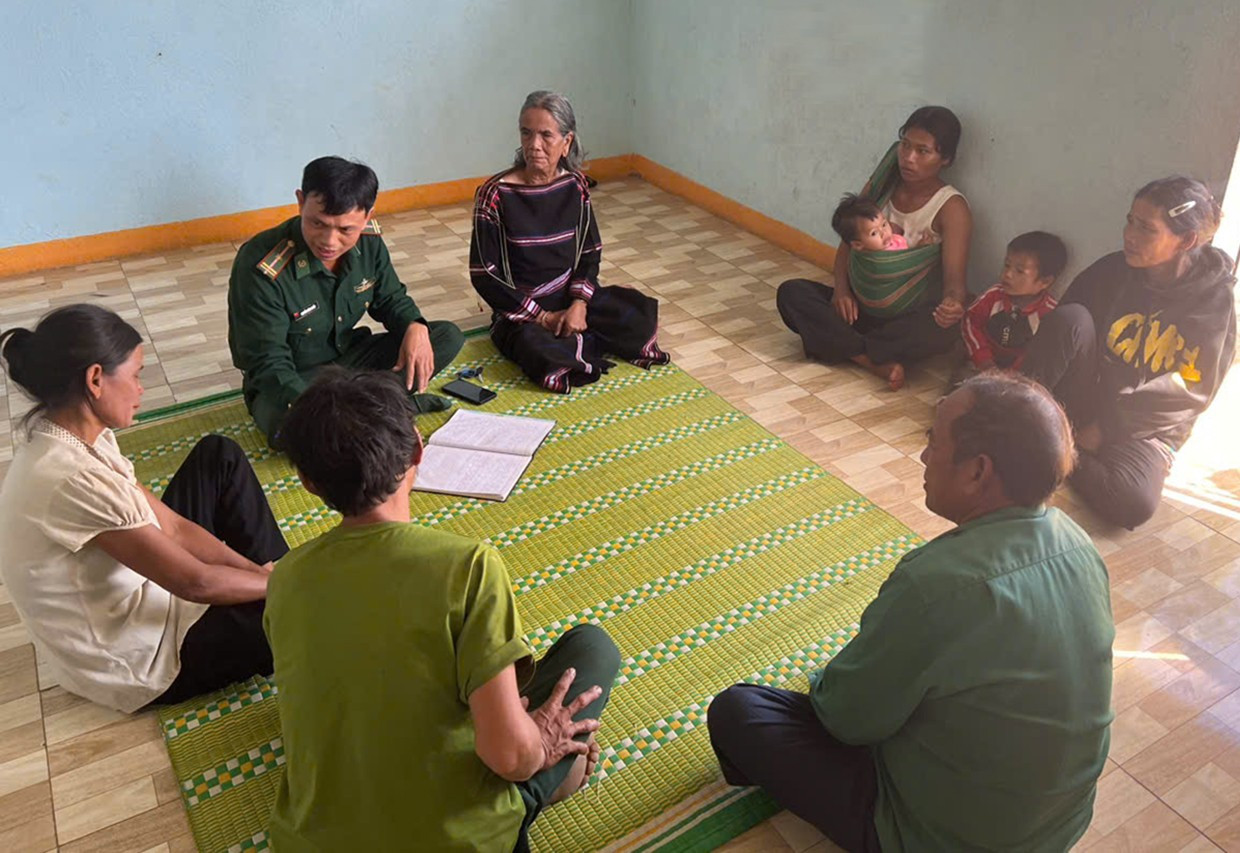 Cán bộ Đồn Biên phòng Ia Púch tuyên truyền pháp luật cho người dân. Ảnh: Thiên Di