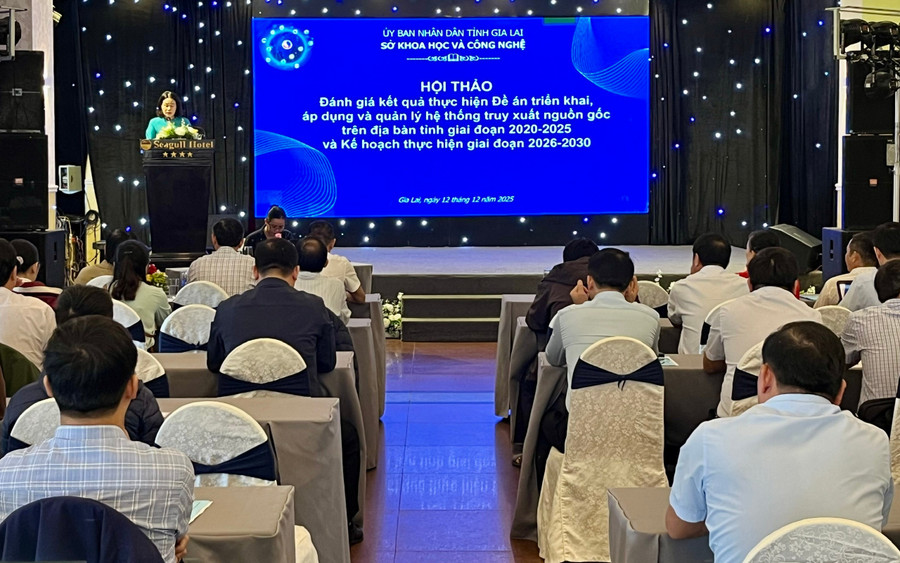 Hội thảo đánh giá kết quả thực hiện Đề án triển khai, áp dụng và quản lý hệ thống truy xuất nguồn gốc trên địa bàn tỉnh giai đoạn 2020-2025. Ảnh: baogialai.com.vn