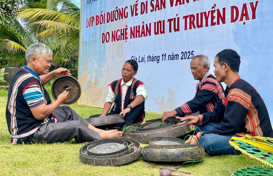 Cần giới thiệu nghệ nhân uy tín tại cộng đồng tham gia giảng dạy tại các lớp truyền dạy đánh chiêng, chỉnh chiêng. Ảnh: baogialai.com.vn