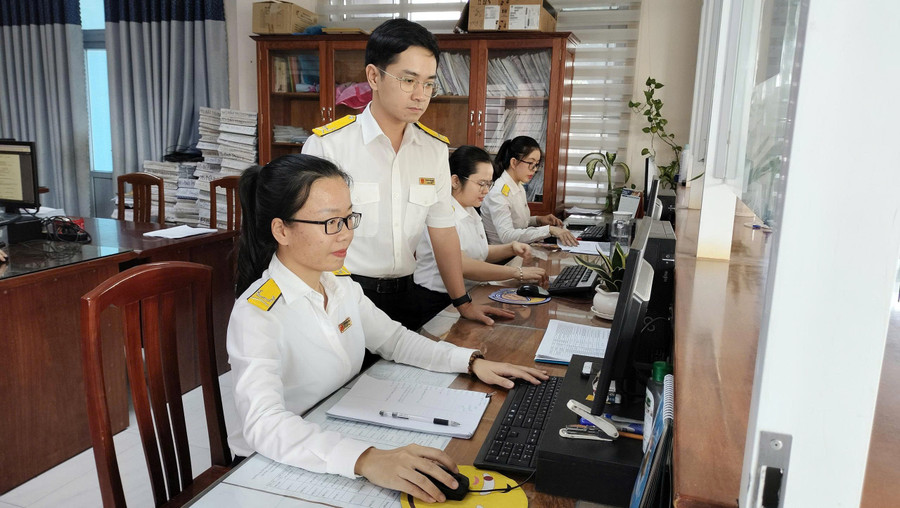 Công chức ngành Thuế tỉnh tiếp nhận, xử lý các vấn đề có liên quan đến lĩnh vực thuế trên môi trường điện tử. Ảnh: T.Sỹ