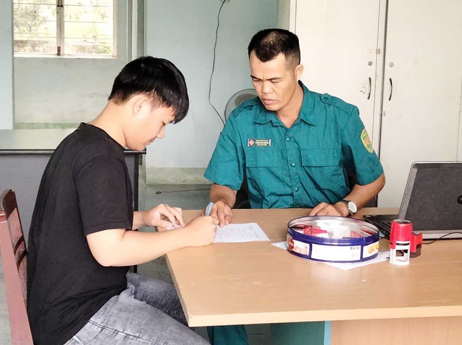 Thanh niên xã Ia Pa hăng hái viết đơn tình nguyện nhập ngũ. Nguồn:baogialai.com.vn