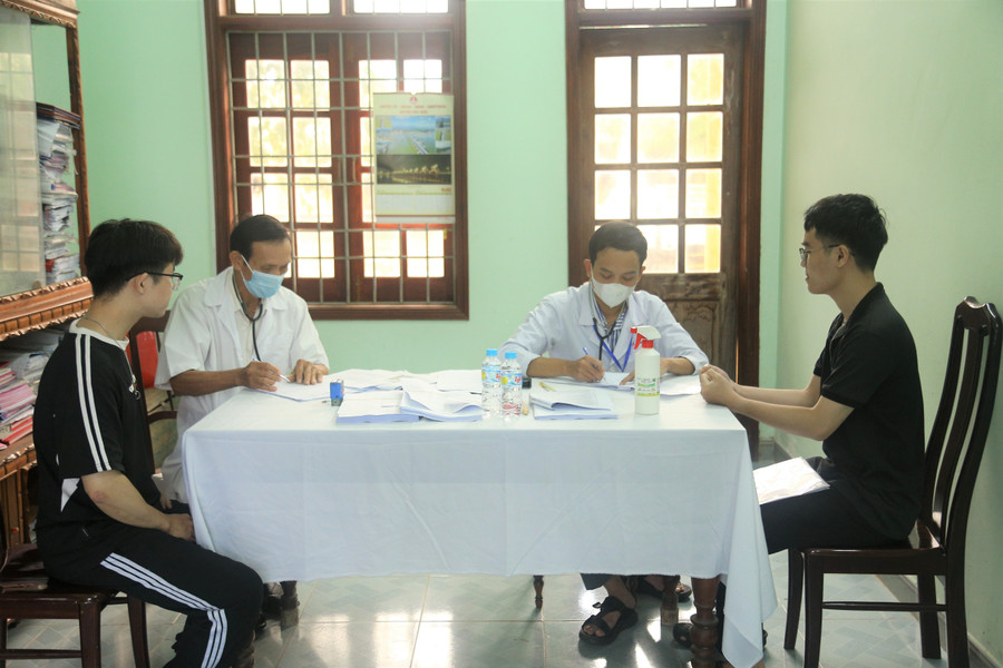 Các thanh niên tham gia khám tuyển NVQS tại xã Tây Sơn. Nguồn:baogialai.com.vn