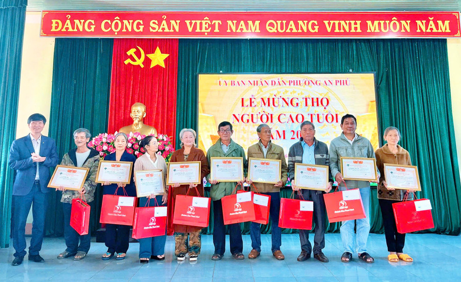 UBND phường An Phú tổ chức lễ mừng thọ, chúc thọ người cao tuổi. Ảnh: baogialai.com.vn