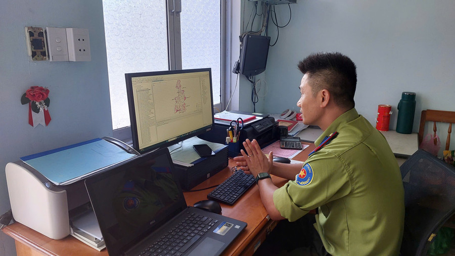Lực lượng quản lý, bảo vệ rừng thu thập thông tin qua phần mềm Smart từ trạm QLBVR. Nguồn:baogialai.com.vn