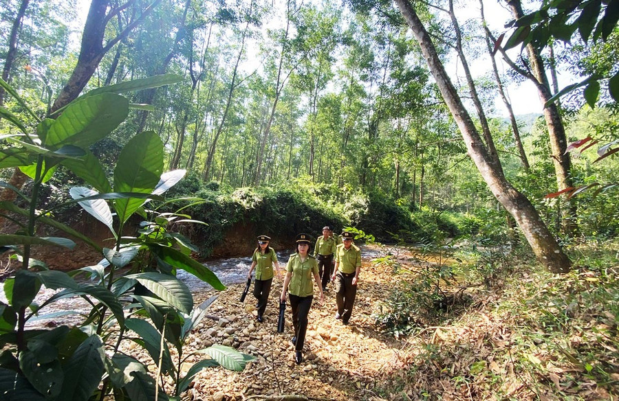 Lực lượng kiểm lâm kiểm tra bảo vệ rừng. Nguồn:baogialai.com.vn
