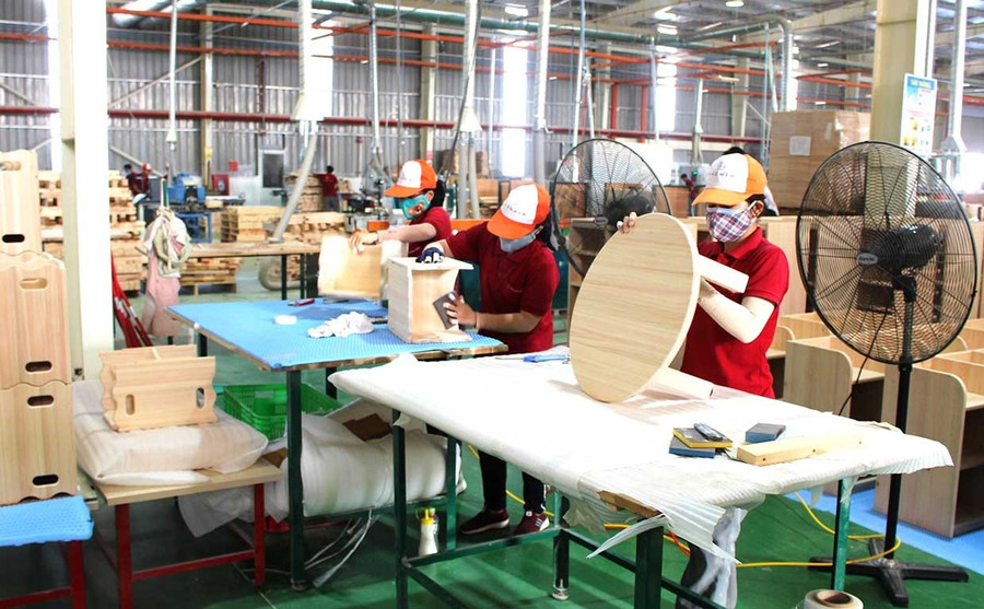 Hoạt động chế biến đồ gỗ xuất khẩu của doanh nghiệp trong Khu công nghiệp Nhơn Hội A. Ảnh: N.H