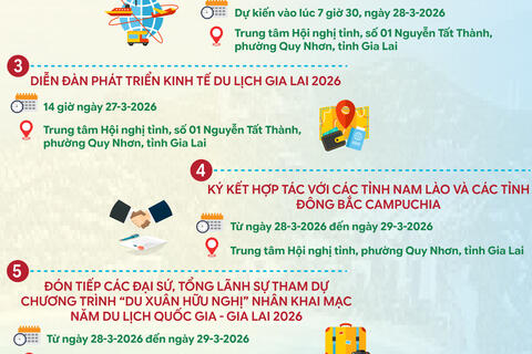 Chuỗi sự kiện khai mạc Năm Du lịch Quốc gia - Gia Lai 2026 Ngày đăng: 07/03/2026 | 15:24 | Lượt xem: 522
