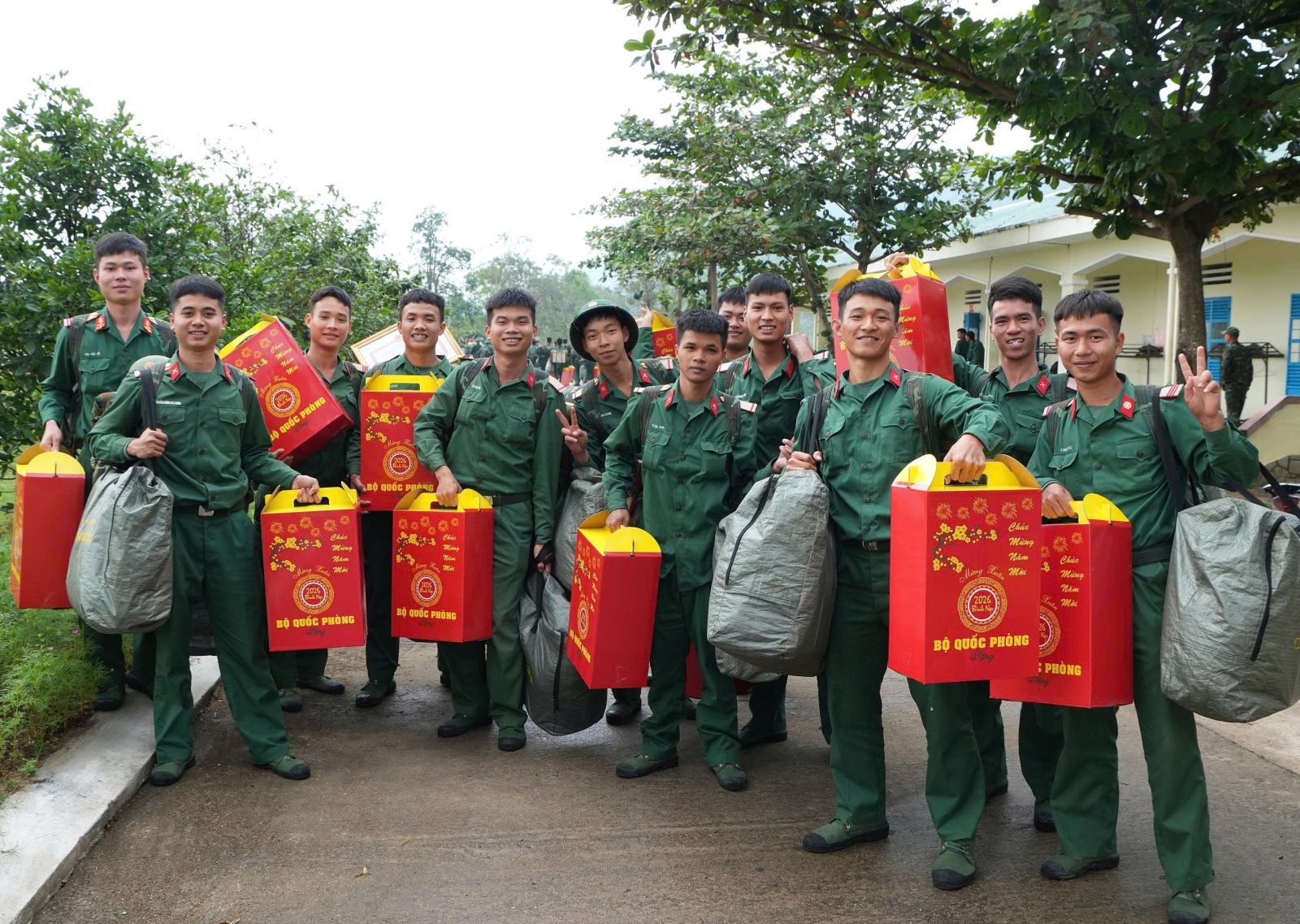 Các chiến sĩ phấn khởi khi được nhận quà của Bộ Quốc phòng trong ngày đặc biệt.