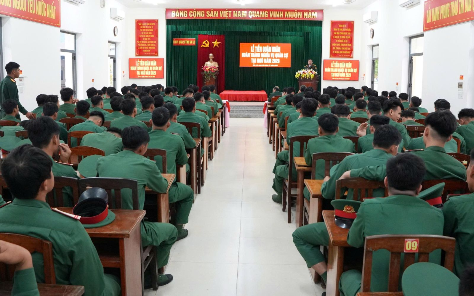 Quang cảnh buổi lễ tiễn quân nhân hoàn thành nghĩa vụ quân sự năm 2026