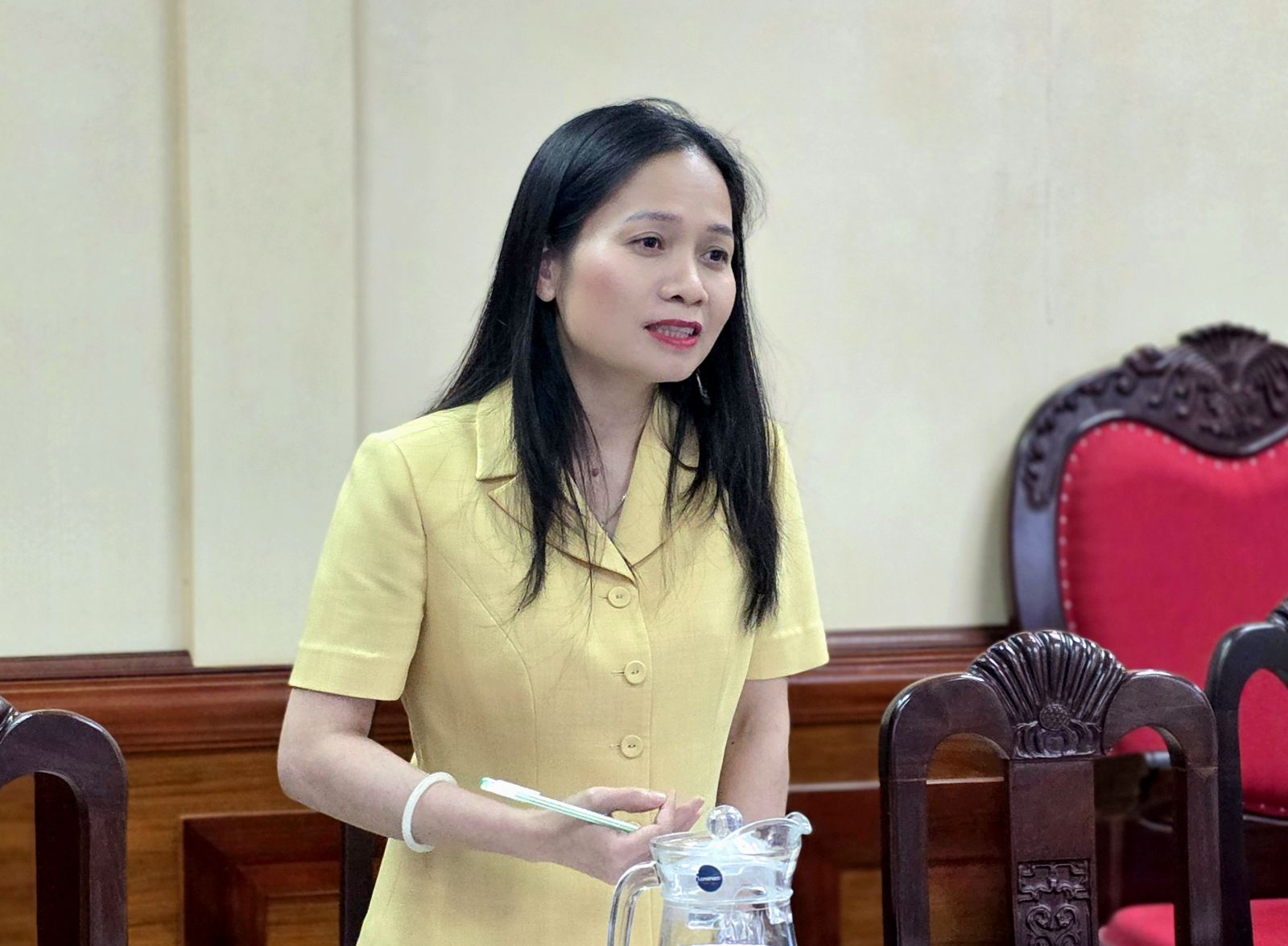 Phó Trưởng đoàn chuyên trách Đoàn đại biểu Quốc hội tỉnh Siu Hương phát biểu tại buổi làm việc.