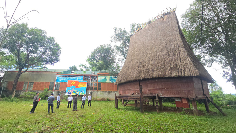 Đoàn công tác khảo sát khu vực nhà rông làng Ơp. Ảnh: B.B