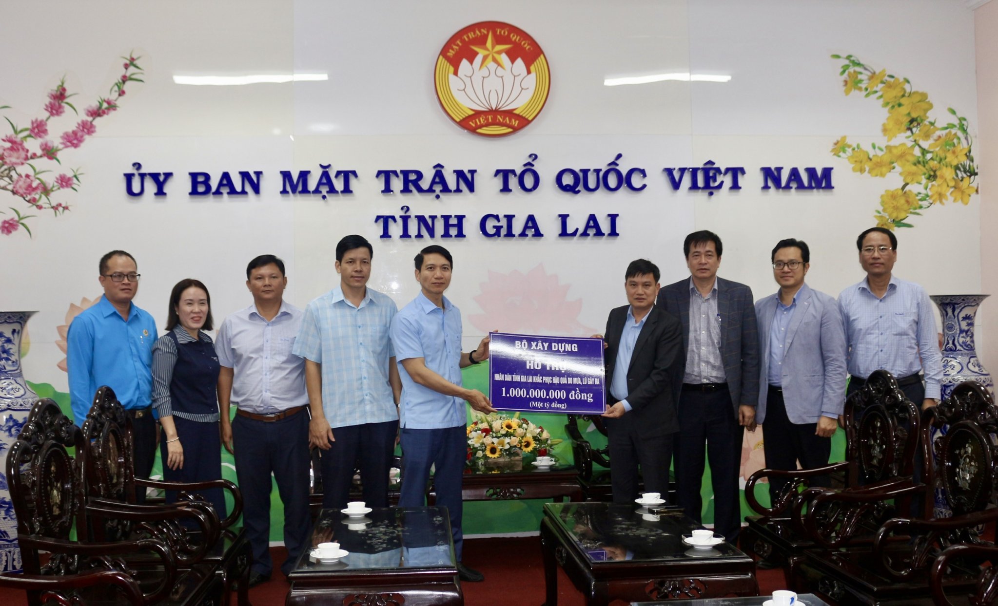 Phó Bí thư chuyên trách Đảng ủy Bộ Xây dựng Đào Văn Tiến cho biết, hưởng ứng lời kêu gọi của Ủy ban Trung ương Mặt trận Tổ quốc Việt Nam và nhằm chia sẻ khó khăn với nhân dân các tỉnh chịu thiệt hại do thiên tai, Bộ Xây dựng đã huy động cán bộ, công chức, viên chức và người lao động trong ngành đóng góp, ủng hộ kinh phí hỗ trợ. Số tiền 01 tỷ đồng trao cho Gia Lai là món quà thể hiện tinh thần “tương thân, tương ái”, mong muốn cùng tỉnh Gia Lai sớm khắc phục thiệt hại, ổn định cuộc sống của người dân.