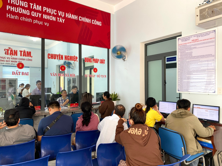 Người dân thực hiện thủ tục hành chính tại Trung tâm Phục vụ hành chính công phường Quy Nhơn Tây. Ảnh: Nguyễn Chơn