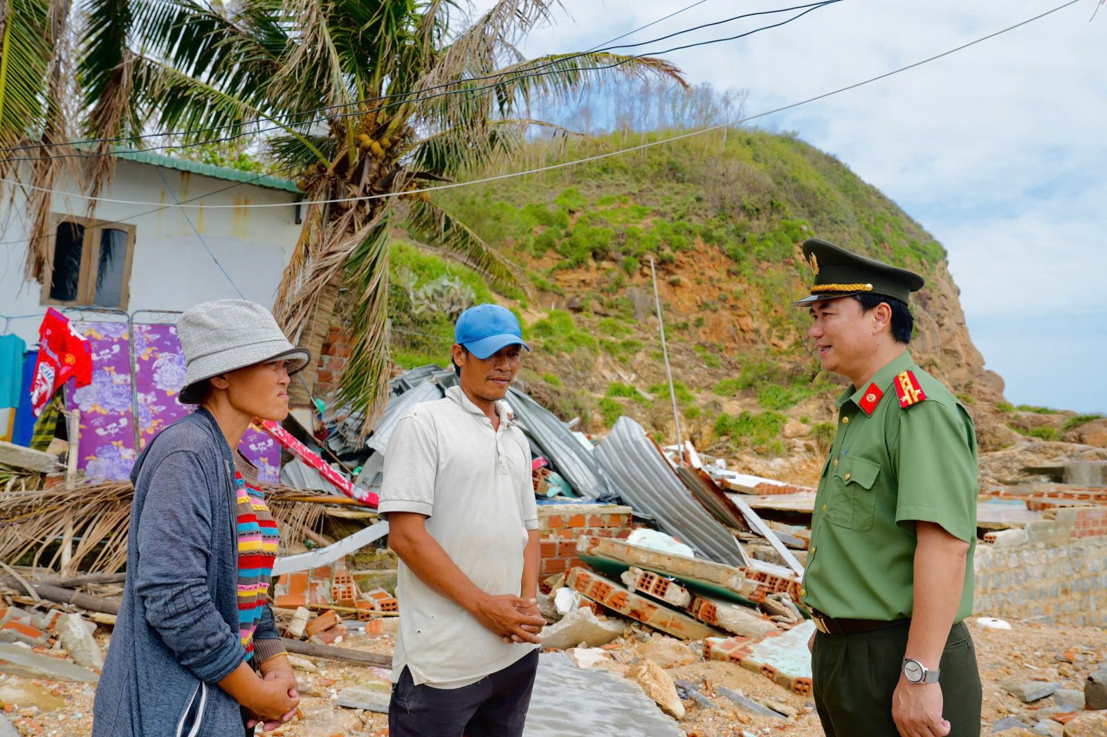 Trước sự hỗ trợ của các cán bộ, chiến sĩ công an, ông Lê Thạch Ngọc ở xóm Hải Bắc, xã Quy Nhơn Đông, bày tỏ sự vui mừng: Công an hỗ trợ vật liệu cho mình xây nhà, 1/3 tiền, gạch, xi măng, sắt thép. Tết nay gia đình tôi có nhà mới thì sẽ rất là vui, hạnh phúc.