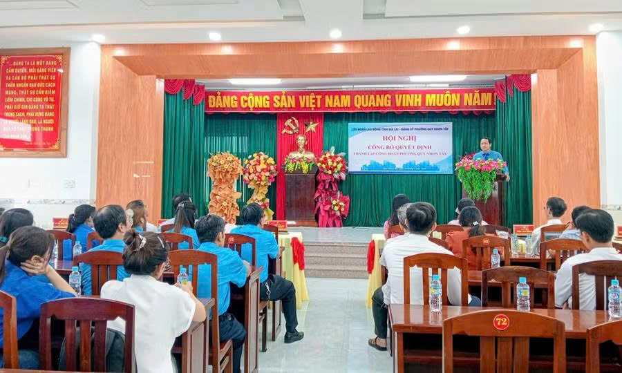 Tại hội nghị, LĐLĐ tỉnh cũng công bố quyết định chỉ định Ban Chấp hành, Ban Thường vụ, Chủ tịch, Phó Chủ tịch và Ủy ban Kiểm tra Công đoàn phường nhiệm kỳ 2026-2030. Theo đó, ông Nguyễn Khắc Việt - Chuyên viên Ban Công tác Công đoàn được chỉ định giữ chức Chủ tịch Công đoàn phường Quy Nhơn Tây.