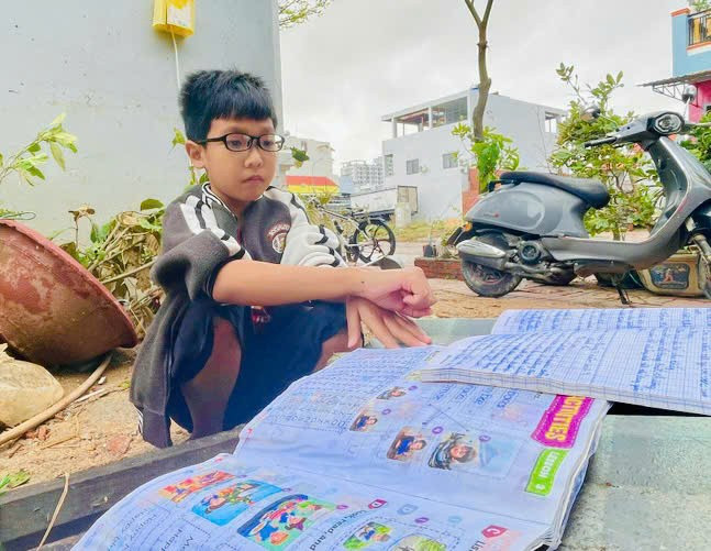 Mưa lũ cũng khiến toàn bộ sách vở, quần áo của em Ngô Tấn Phú-học sinh Trường Tiểu học số 1 Nhơn Bình (phường Quy Nhơn Đông) hư hỏng. “Lúc thấy sách vở bị ướt, em chỉ lo khi đi học bị thiếu sách, thiếu vở. Được tặng SGK và vở, em yên tâm trở lại với trường lớp”-Phú chia sẻ.