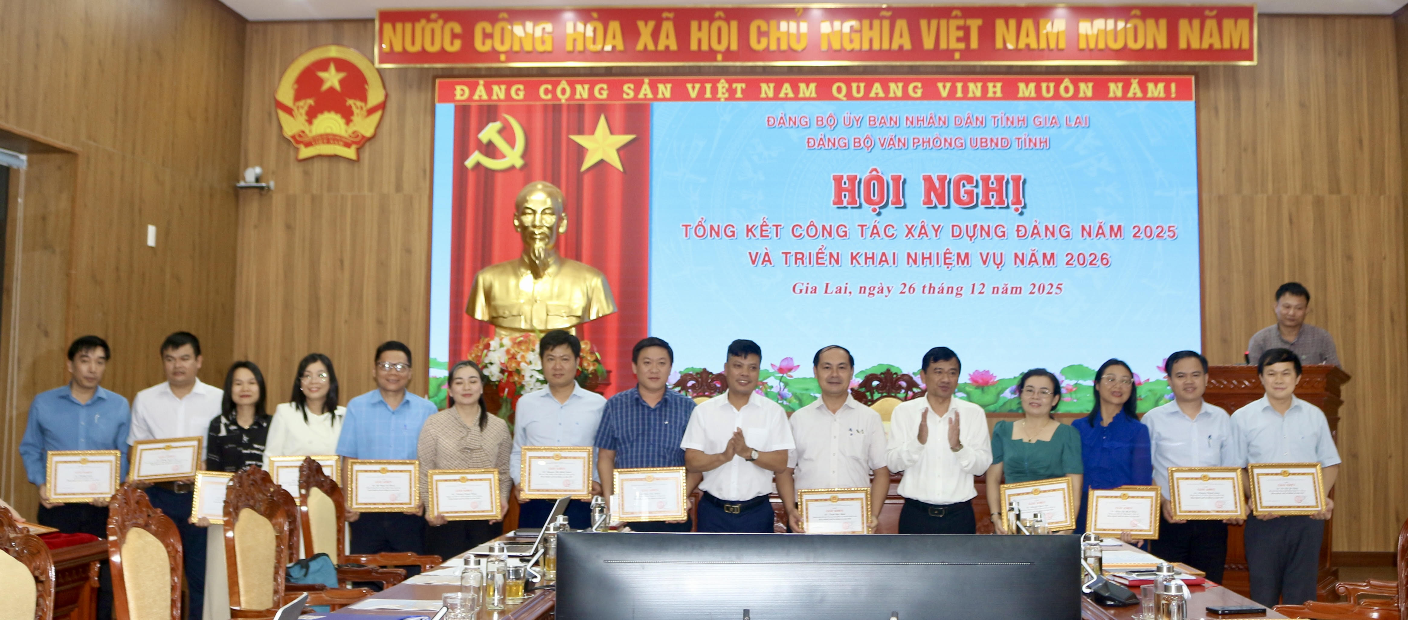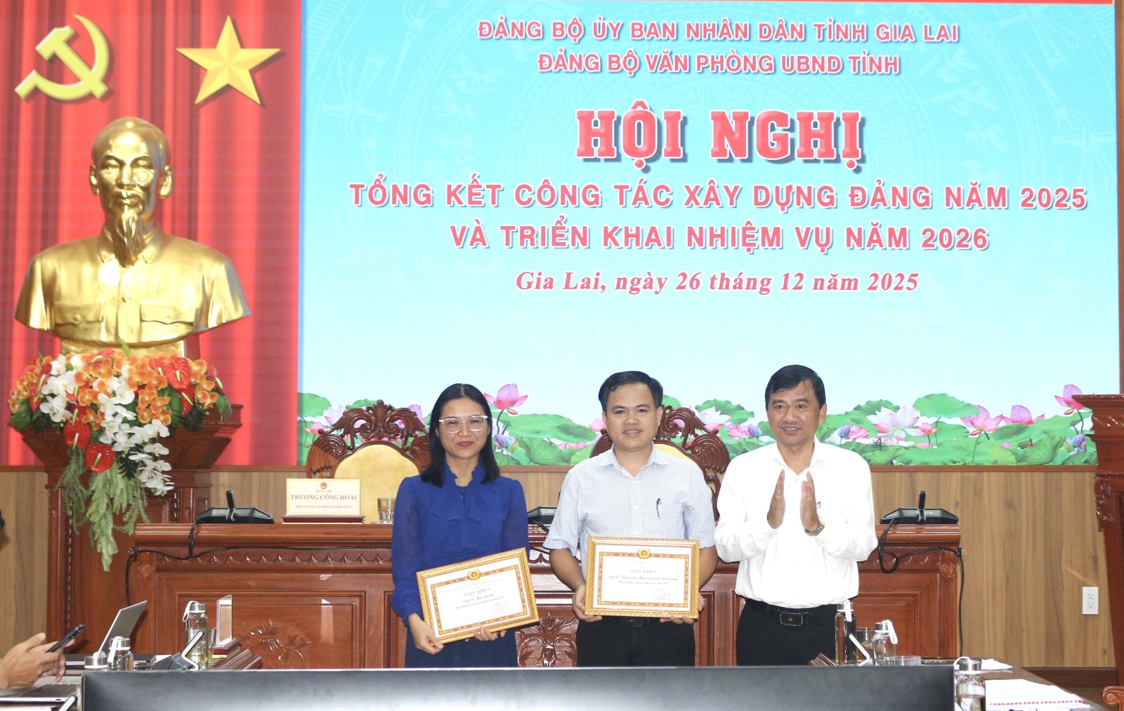 Tại Hội nghị, Ban Chấp hành Đảng bộ Văn phòng UBND tỉnh đã tặng Giấy khen cho 2 chi bộ và 25 đảng viên hoàn thành xuất sắc nhiệm vụ năm 2025.