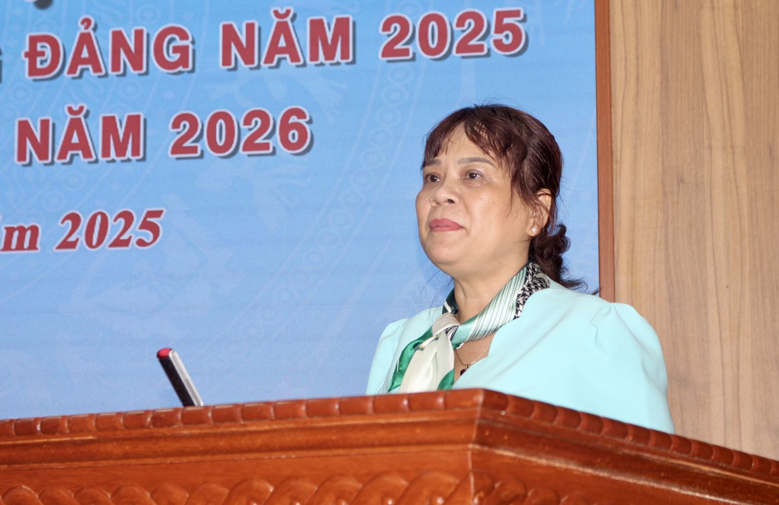 Phát biểu chỉ đạo tại hội nghị, đồng chí Võ Thị Thu Hòa, Phó Bí thư chuyên trách Đảng ủy UBND tỉnh ghi nhận và đánh giá cao những nỗ lực, cố gắng của Đảng bộ Văn phòng UBND tỉnh trong năm 2025. Trong điều kiện còn nhiều khó khăn, Đảng bộ đã bám sát sự lãnh đạo, chỉ đạo của Đảng ủy UBND tỉnh, triển khai đồng bộ các nhiệm vụ công tác Đảng gắn với thực hiện tốt nhiệm vụ chuyên môn, góp phần quan trọng vào kết quả thực hiện nhiệm vụ chung của Đảng bộ UBND tỉnh.