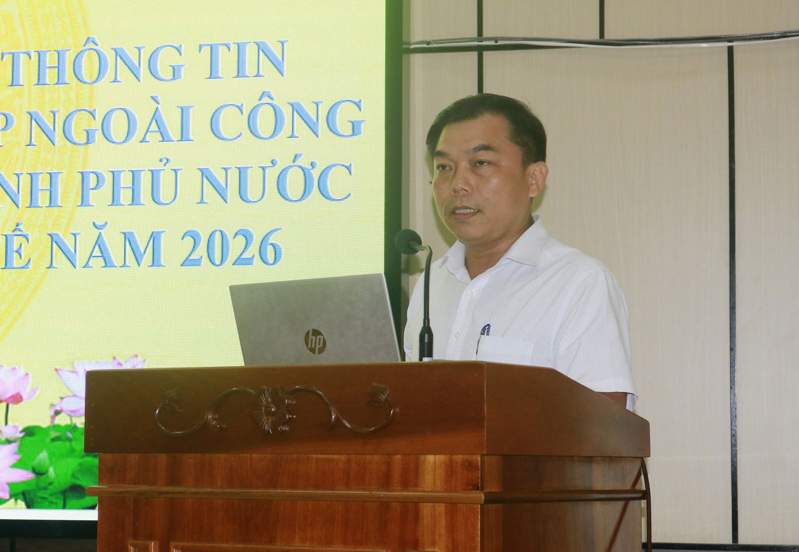 Phó Trưởng Thống kê tỉnh Nguyễn Công Luận - Ủy viên Ban Chỉ đạo TĐTKT năm 2026 tỉnh phát biểu tại hội nghị.