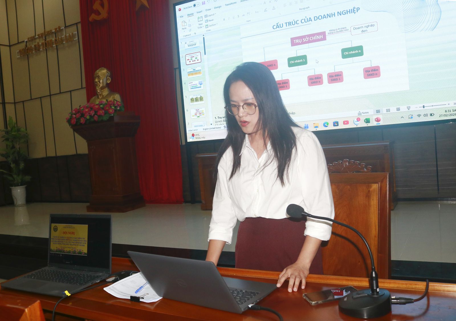 Báo cáo viên giới thiệu nội dung phiếu điều tra doanh nghiệp.