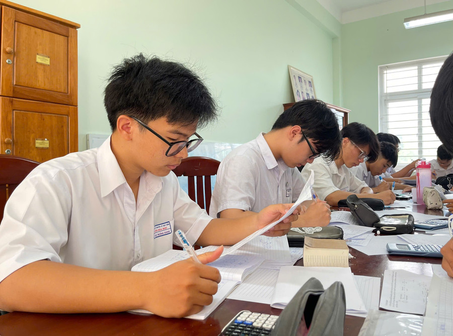 Đội tuyển học sinh giỏi Trường THPT chuyên Lê Quý Đôn (phường Quy Nhơn) tăng tốc ôn luyện cho kỳ thi sắp tới. Ảnh: Hồ Điểm