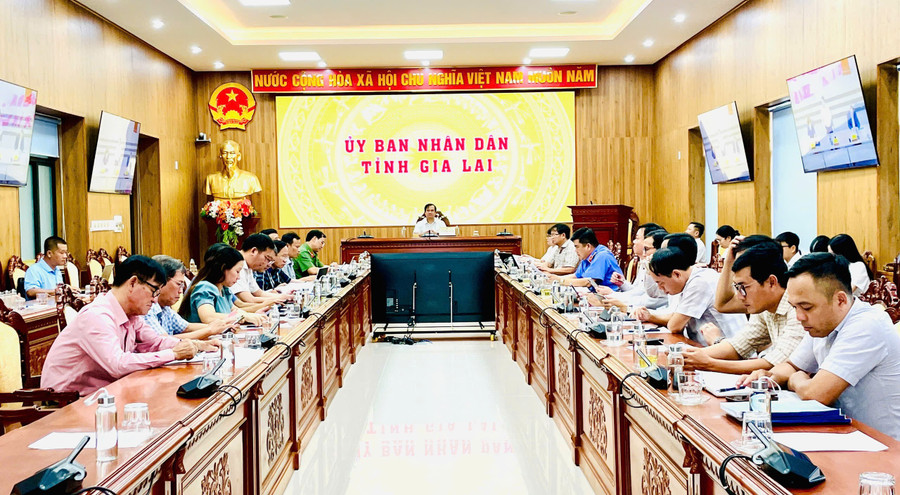 Lãnh đạo các sở, ngành của tỉnh Gia Lai dự Hội thảo tại điểm cầu truyền hình tỉnh. Ảnh: Phi Long