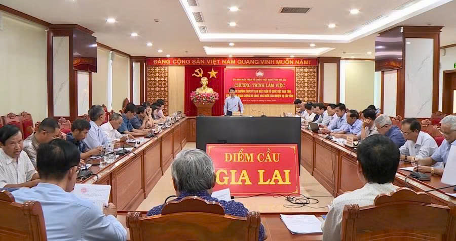 Phó Bí thư Tỉnh ủy, Chủ tịch Ủy ban MTTQ Việt Nam tỉnh Gia Lai Nguyễn Ngọc Lương phát biểu tại buổi làm việc. Ảnh: Hoàng Vũ
