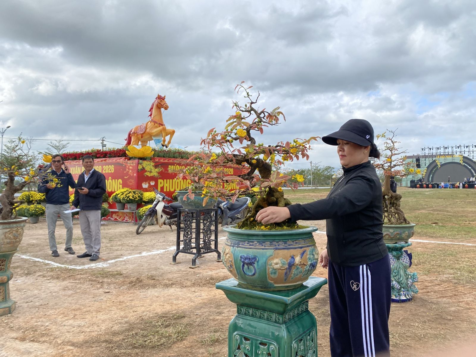 Chủ vườn chăm sóc tác phẩm Mai vàng tại Lễ hội