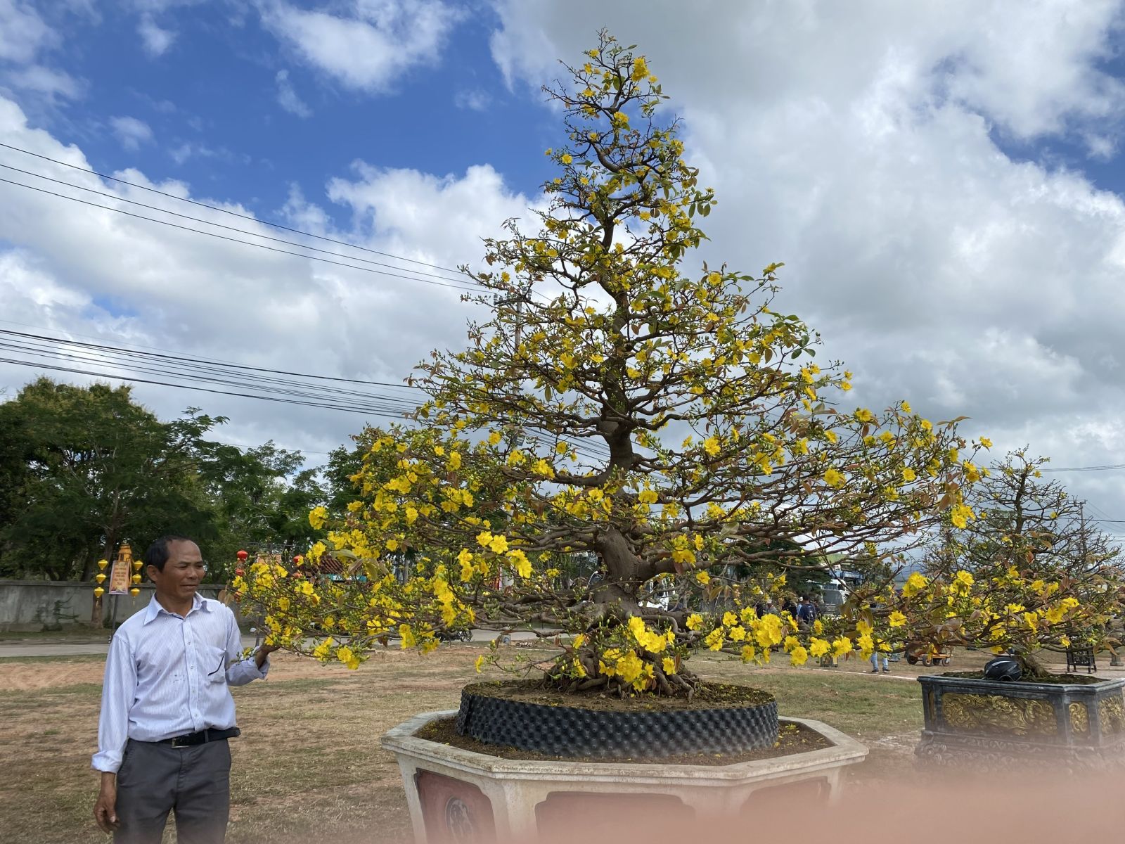 Nghệ nhân Đỗ Minh Kỳ, ở Tổ dân phố Hoà Cư, phường An Nhơn Đông mang đến lễ hội cây mai cảnh dáng long có chiều cao từ bộ đế đến ngọn hơn 3,5 mét, tán hoa chi dưới có độ dài tương tự. Ông Kỳ cho biết, cây mai này được ông mua về trồng, chăm sóc, cắt tỉa, tạo dáng hơn 40 năm. Tại Liên hoan triển lãm sinh vật cảnh tỉnh Gia Lai mở rộng lần thứ I-2025 được tổ chức vào tháng 9, tác phẩm mai của ông vinh đự được nhận giải đặc biệt ở thể loại mai dáng long. Là người con quê hương, ông quyết định mang tác phẩm của mình đến trưng bày, để mọi người cùng chiêm ngưỡng và góp phần quảng bá hình ảnh mai vàng.
