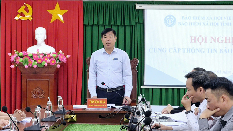 Ông Trần Ngọc Tuấn - Phó Giám đốc BHXH tỉnh Gia Lai thông báo một số chính sách mới về BHXH, BHYT, và BHTN có hiệu lực từ năm 2026. Ảnh: Bảo Ngọc