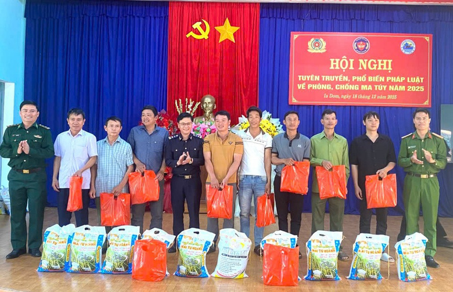 Dịp này, Chi cục Hải quan khu vực XIV và các lực lượng chức năng của tỉnh đã trao tặng 200 suất quà cho người dân, người có uy tín, người hoàn lương có hoàn cảnh khó khăn trên địa bàn 2 xã Ia Nan và Ia Dom. Qua đó động viên người dân tích cực tham gia công tác phòng, chống ma túy tại cơ sở, nhất là tại khu vực biên giới của tỉnh.
