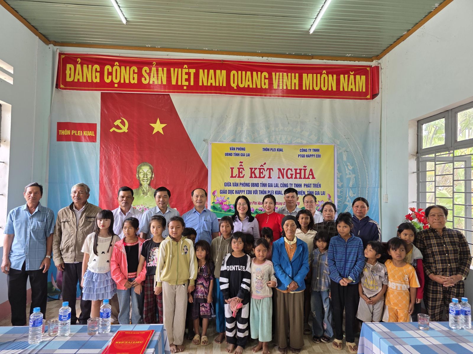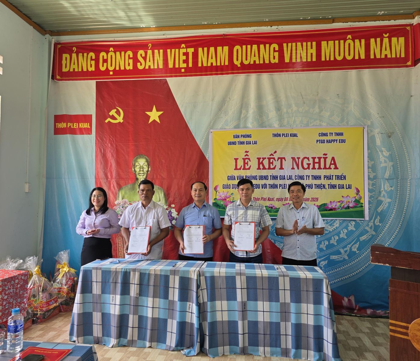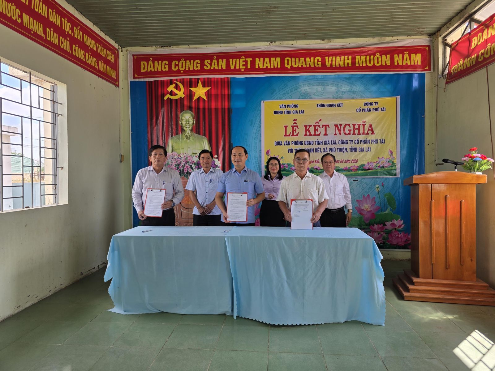 Dưới sự chứng kiến của lãnh đạo địa phương, Văn phòng UBND tỉnh cùng Công ty Cổ phần Phú Tài và Công ty TNHH Phát triển Giáo dục Happy Edu đã ký kết bản giao ước kết nghĩa với thôn Đoàn Kết và thôn Plei Kual. Đây là lời cam kết đồng hành lâu dài trong việc hỗ trợ phát triển kinh tế và chăm lo đời sống tinh thần cho nhân dân địa phương.