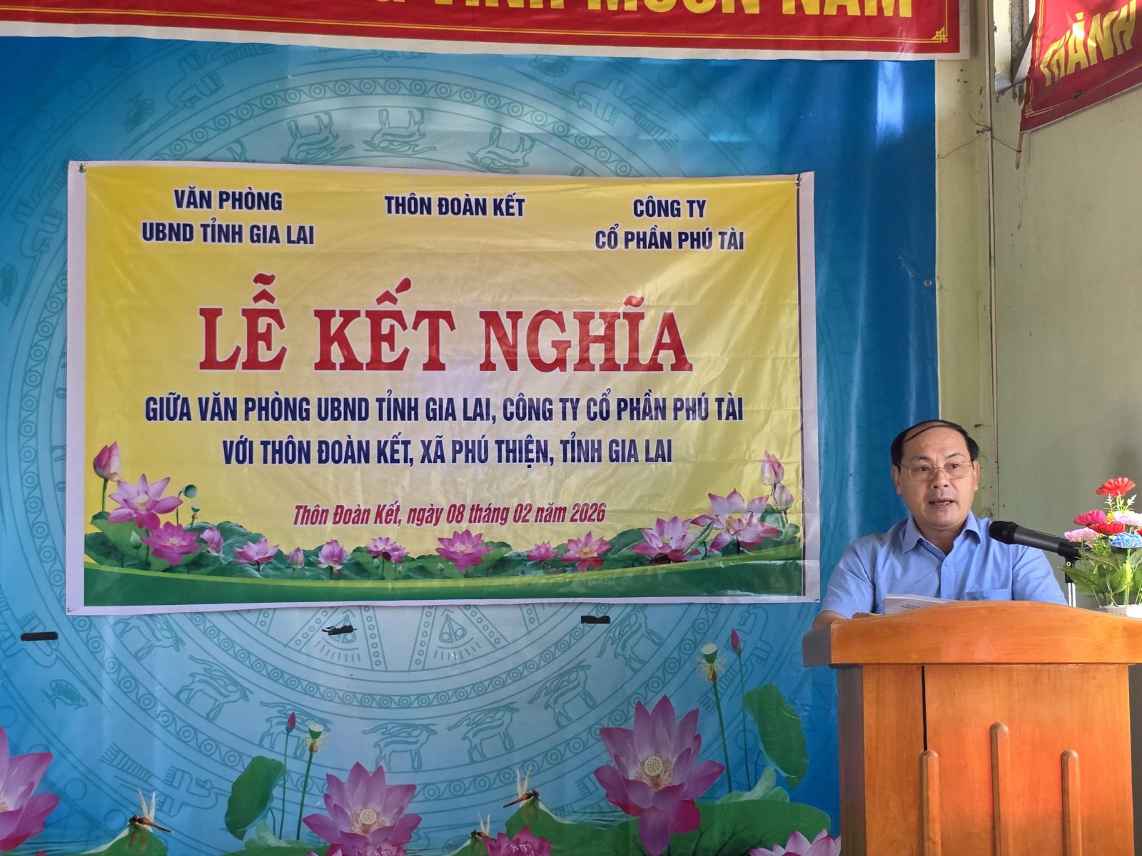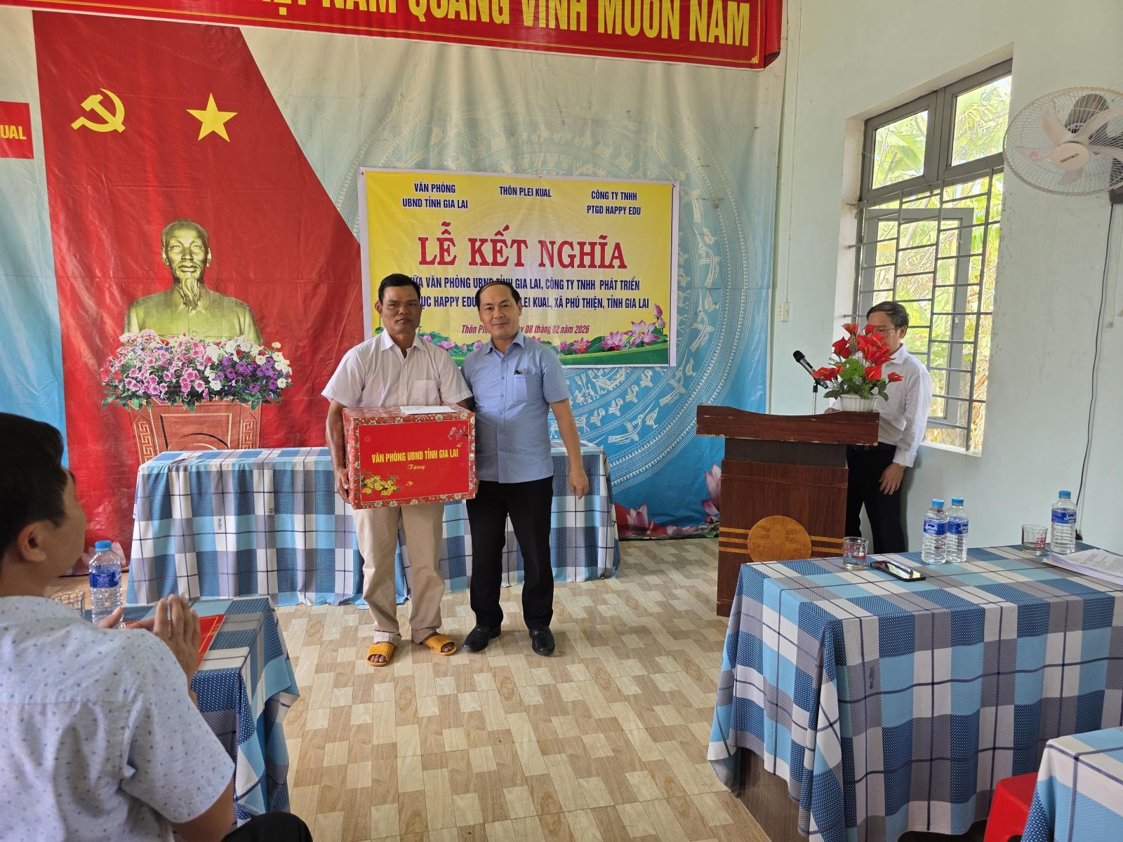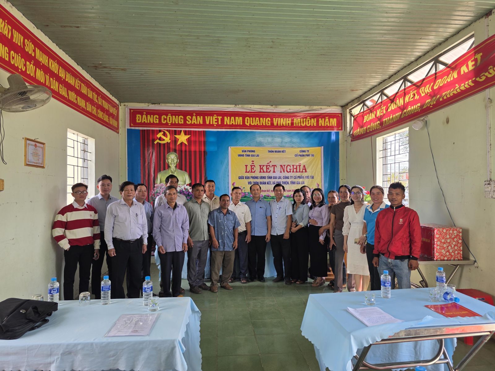 Dưới sự chứng kiến của lãnh đạo địa phương, Văn phòng UBND tỉnh cùng Công ty Cổ phần Phú Tài và Công ty TNHH Phát triển Giáo dục Happy Edu đã ký kết bản giao ước kết nghĩa với thôn Đoàn Kết và thôn Plei Kual. Đây là lời cam kết đồng hành lâu dài trong việc hỗ trợ phát triển kinh tế và chăm lo đời sống tinh thần cho nhân dân địa phương.