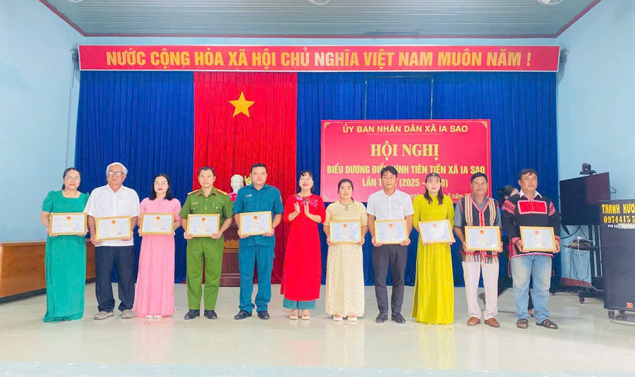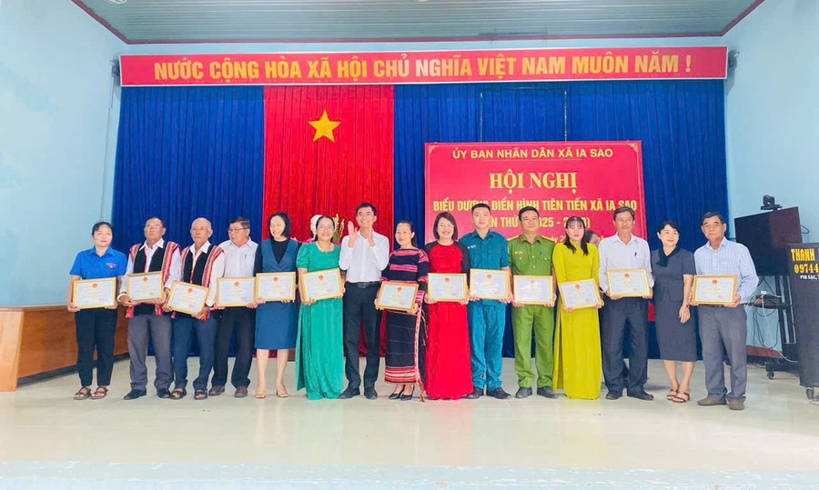 Dịp này, Chủ tịch UBND xã Ia Sao tặng giấy khen cho 10 tập thể và 13 cá nhân có thành tích xuất sắc trong phong trào thi đua yêu nước giai đoạn 2020-2025.