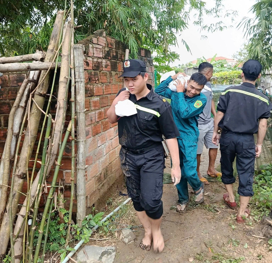 Với tinh thần khẩn trương, các lực lượng đã tiến hành đóng cọc tre, vận chuyển khoảng 1.200 bao cát kịp thời gia cố đoạn đê, đảm bảo an toàn cho khoảng 50 hộ dân ở xóm 7 (thôn An Cửu) ở phía hạ lưu.
