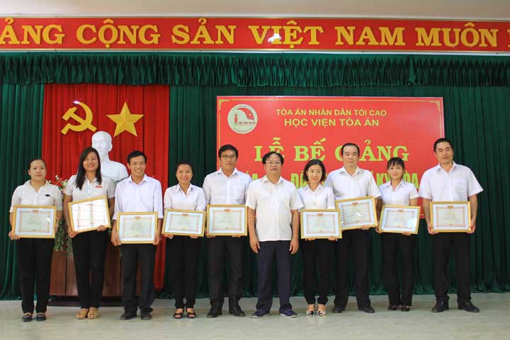Lãnh đạo Học viện Tòa án khen thưởng các học viên xuất sắc .