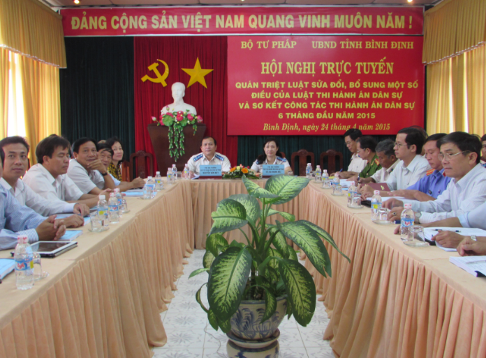 Tại điểm cầu Bình Định, có ông Nguyễn Văn Hay, Phó Cục trưởng Cục THADS tỉnh; bà Võ Thị Thanh Mai, Phó Cục Trưởng Cục THADS tỉnh đồng chủ trì.