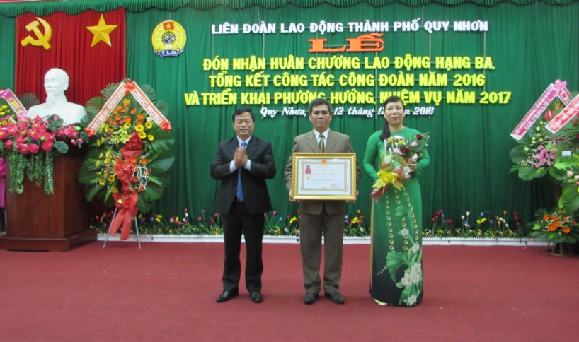 Dịp này, LĐLĐ TP. Quy Nhơn đã vinh dự đón nhận Huân chương Lao động hạng Ba do Chủ tịch nước trao tặng, vì có thành tích xuất sắc trong công tác giai đoạn 2011-2015. Thủ tướng Chính phủ tặng Bằng khen cho ông Nguyễn Ngọc Tiến, Chủ tịch LĐLĐ thành phố Quy Nhơn. Nhiều tập thể và cá nhân được khen thưởng vì đã có thành tích xuất sắc trong phong trào thi đua và xây dựng tổ chức Công đoàn vững mạnh năm 2016…/.