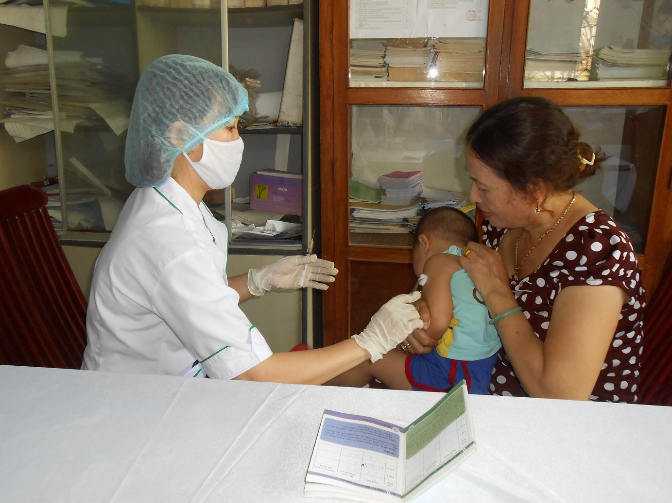 Trạm Y tế phường Quang Trung làm tốt công tác tiêm vắc xin sởi cho trẻ.