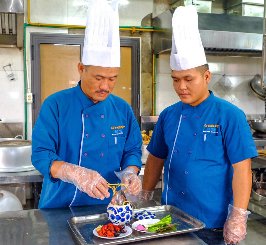 Anh Huỳnh Văn Cường - bếp trưởng Nhà hàng ẩm thực Việt (cơ sở tại phường Quy Nhơn và Quy Nhơn Đông) chia sẻ: “Chúng tôi tham gia với mong muốn mang đến những món ăn quen thuộc nhưng được trình bày sáng tạo, hấp dẫn hơn đến đông đảo người dân và du khách”.