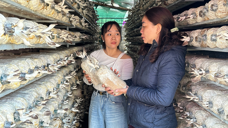 Từ thực tiễn sản xuất, chị Hạnh không ngừng cải tiến kỹ thuật. Cơ sở đã đầu tư hệ thống tưới phun sương cao áp, cài đặt tưới tự động theo từng giai đoạn sinh trưởng; thay thế bọc giấy báo bằng nắp đậy chuyên dụng, giúp thuận tiện trong cấy meo, điều tiết sản lượng và hạn chế sâu bệnh. Nhờ vậy, nấm sinh trưởng đồng đều, chất lượng ngày càng nâng cao.