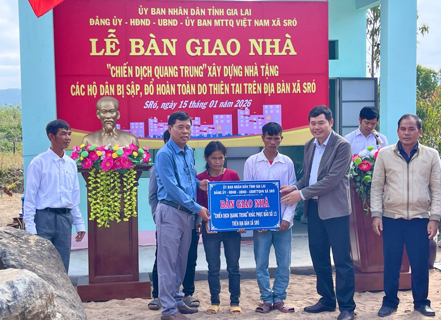 Sáng 15-1, Đảng ủy, chính quyền xã Sró tổ chức bàn giao nhà “Chiến dịch Quang Trung” xây dựng tặng các hộ dân bị sập, đổ hoàn toàn do thiên tai trên địa bàn xã.