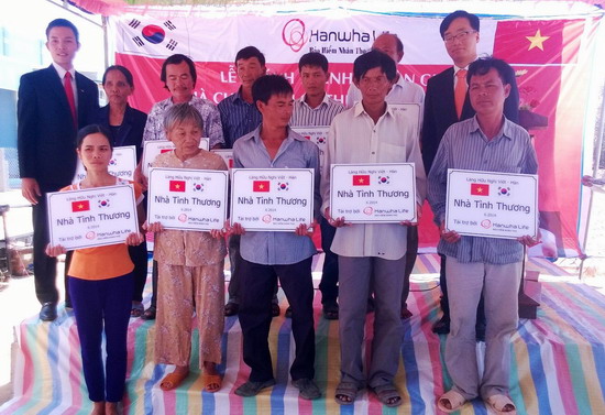 Đại diện nhà tài trợ và Trung tâm văn hóa Hàn Quốc tại thành phố Hồ Chí Minh trao biểu trưng tặng nhà tình thương cho các hộ dân.