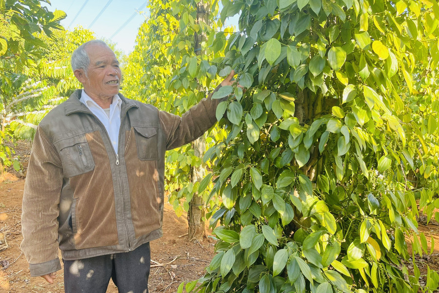 Nhờ cách làm bài bản, kinh tế gia đình ông luôn ổn định. Năm 2025, gia đình ông thu 5 tấn cà phê nhân, riêng hồ tiêu trồng xen cà phê mang lại nguồn thu 80-100 triệu đồng/năm. Hiệu quả ấy là minh chứng thuyết phục khi ông vận động bà con thay đổi cách làm.
