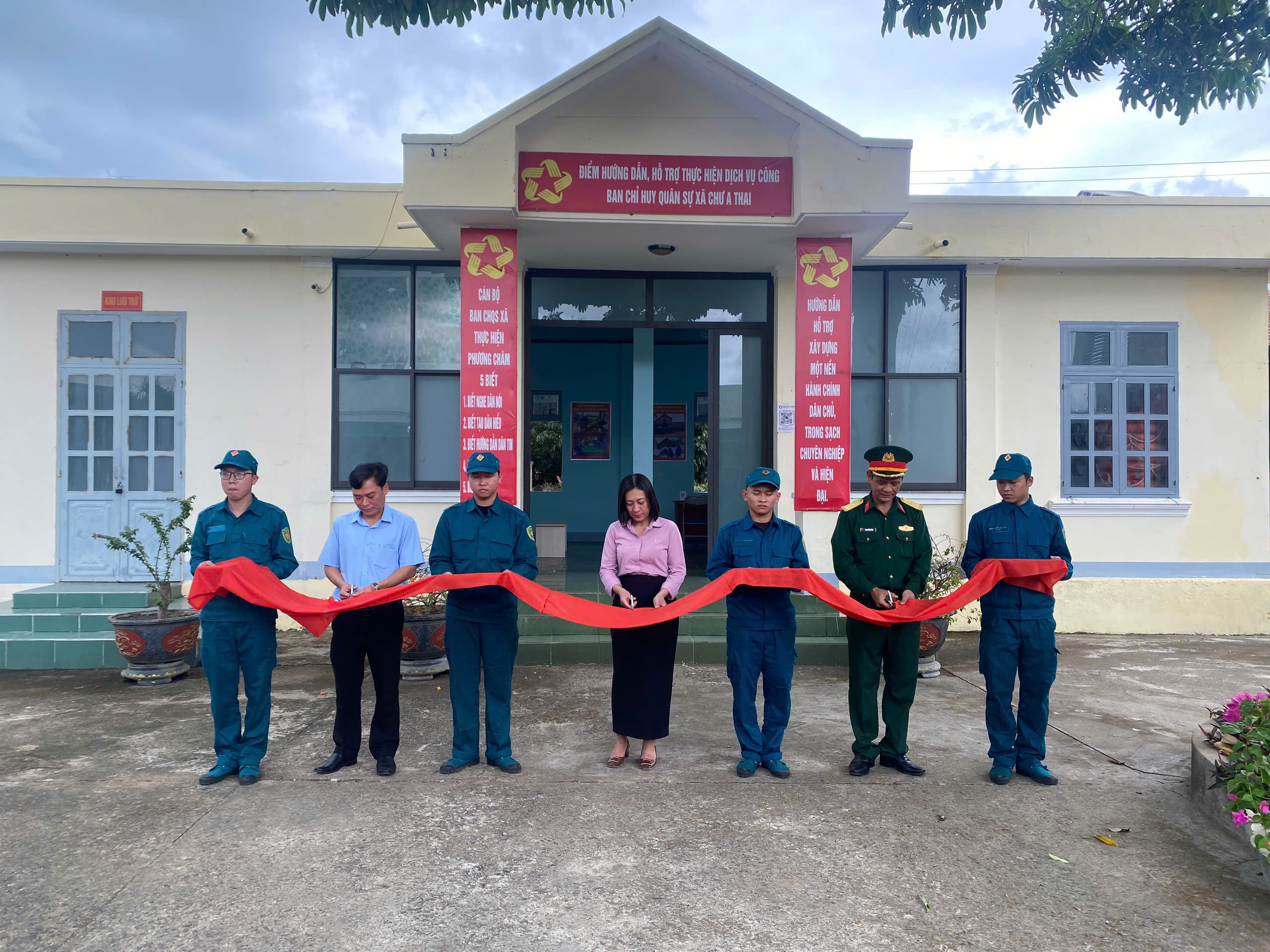 Điểm hướng dẫn, hỗ trợ dịch vụ công trực tuyến tại Ban Chỉ huy Quân sự xã Chư A Thai được thành lập nhằm giúp người dân tiếp cận và sử dụng các dịch vụ công trực tuyến thuận tiện, nhanh chóng. Tại đây, cán bộ, chiến sĩ lực lượng vũ trang trực tiếp hướng dẫn người dân đăng ký tài khoản dịch vụ công, nộp hồ sơ trực tuyến, thanh toán trực tuyến, tra cứu tình trạng xử lý hồ sơ, đăng ký nhận kết quả tại nhà; đồng thời tiếp nhận, hỗ trợ phản ánh, kiến nghị liên quan đến thủ tục hành chính.