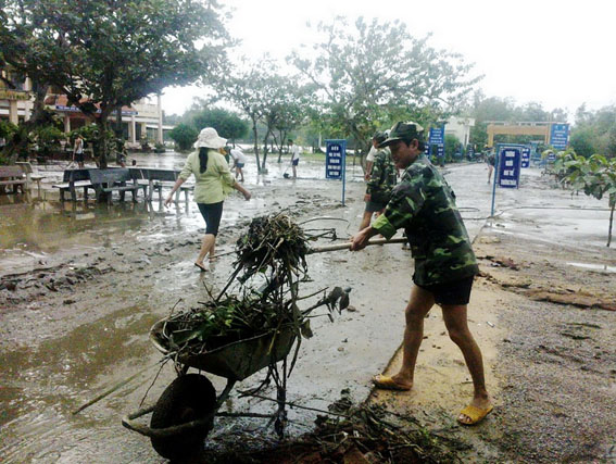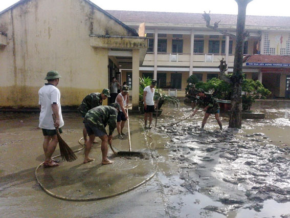 Tại trường tiểu học số 1 xã Phước Thắng, Thiếu tá Nguyễn Toàn, Trợ lý dân quân thuộc Ban chỉ huy quân sự huyện Tuy Phước, cho biết: “ Theo lệnh điều động của Chỉ huy trưởng, 10 cán bộ, sĩ quan đến giúp trường quét dọn bùn non, vệ sinh các lớp học, chúng tôi phấn đấu hoàn thanh xong một ngày rồi đến giúp đỡ các địa phương khác”.