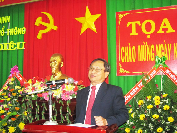 Phát biểu tại buổi lễ, đồng chí Nguyễn Minh Trung, Bí thư Huyện ủy đã nhiệt liệt biểu dương và ghi nhận những thành tích mà tập thể các bộ, giáo viên, công nhân viên nhà trường đã đạt được. Đồng thời, đồng chí cũng đề nghị trường tiếp tục duy trì vững chắc và phát huy những kết quả đạt được trong năm học 2012-2013; tiếp tục đẩy mạnh việc “Học tập và làm theo tấm gương đạo đức Hồ Chí Minh”, cuộc vận động “Hai không”, phong trào thi đua “Xây dựng trường học thân thiện, học sinh tích cực”, chú trọng việc “Dạy chữ” đi đôi với “Dạy người”; thực hiện tốt chủ trương công bằng xã hội trong giáo dục để học sinh, con em các gia đình nghèo, gia đình có công cách mạng được đến trường và học thành tài.