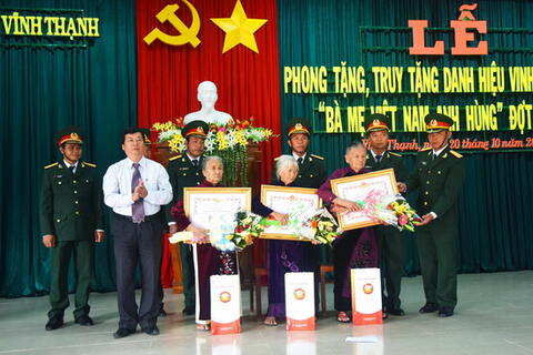 (binhdinh.gov.vn)-Thừa ủy nhiệm của Chủ tịch nước, ngày 20/10, Huyện ủy - HĐND - UBND - Ủy ban MTTQ Việt nam huyện Vĩnh Thạnh tổ chức Lễ phong tặng, truy tặng danh hiệu vinh dự nhà nước “Bà mẹ Việt Nam anh hùng” đợt 3 năm 2015 cho 9 Mẹ. Trong đó có 3 Mẹ được phong tặng ...