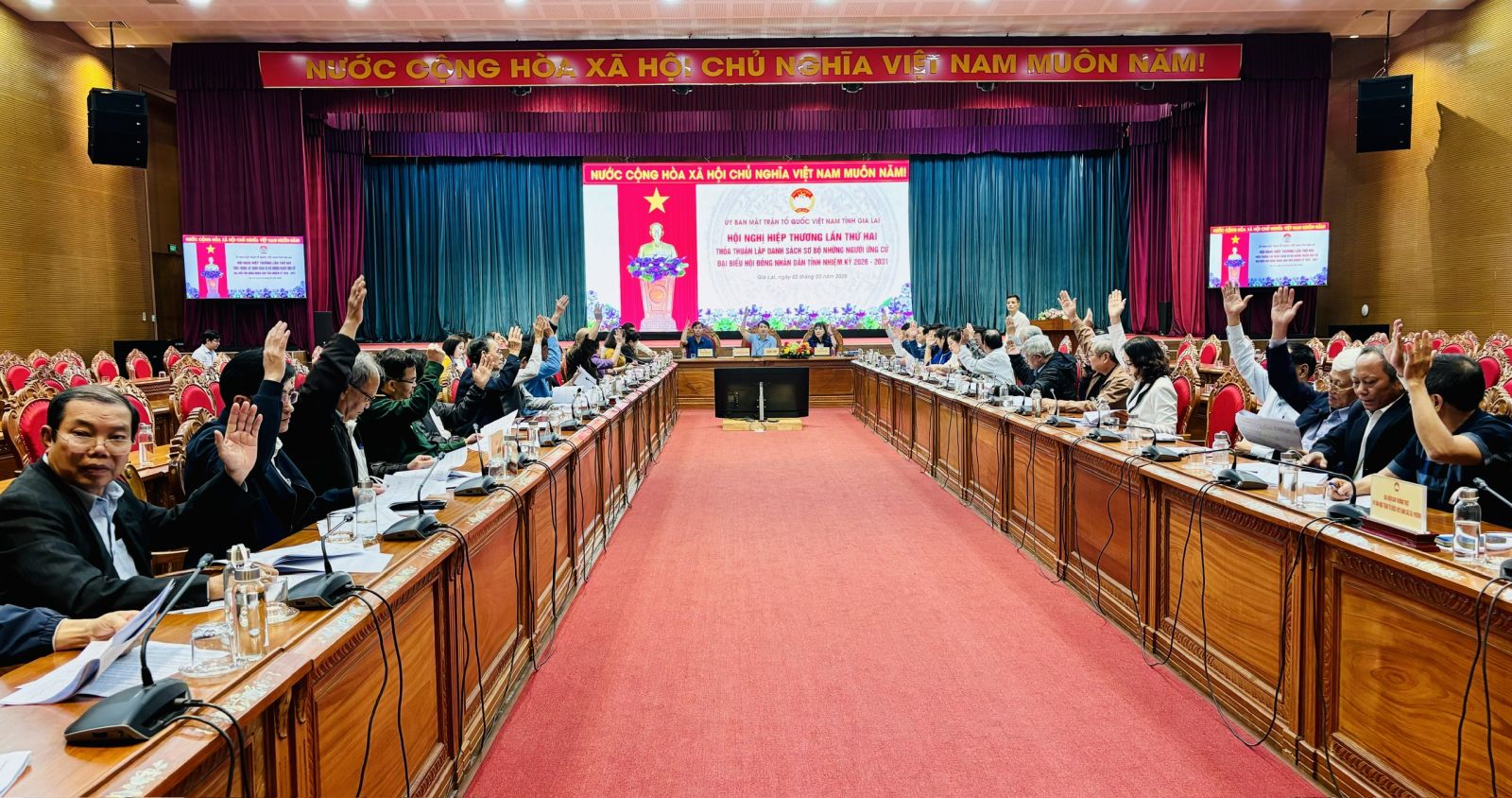 Tất cả những người ứng cử đều đạt 100% cử tri tại cơ quan, đơn vị, địa phương tán thành và tín nhiệm cao, không có vấn đề cần xác minh, làm rõ đối với người ứng cử. Với tinh thần dân chủ, trách nhiệm, các đại biểu đã bày tỏ sự thống nhất cao với dự thảo tờ trình của Ban Thường trực Ủy ban MTTQ tỉnh; đồng thời 100% biểu quyết thống nhất lập danh sách sơ bộ người được giới thiệu ứng cử đại biểu Quốc hội khóa XVI, đại biểu HĐND tỉnh nhiệm kỳ 2026-2031.